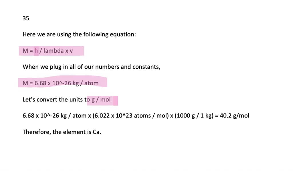 Step-by-step solution Step 1 of 4 de Broglie wavelength. It must be Ca or maybe K because it has a mass of 40 nucleons assume protons and neutrons are the same mass. Check out a sample QA here See Solution Want to see the full answer.