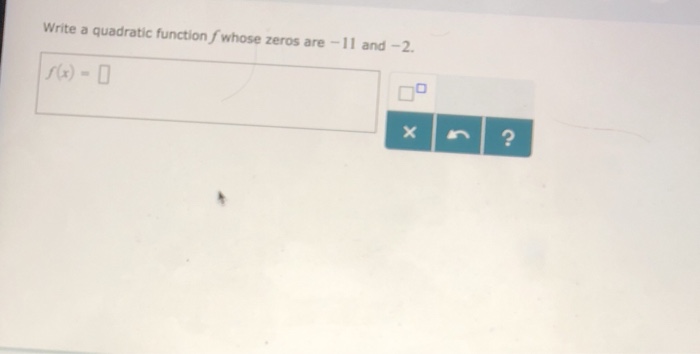 Solved Write A Quadractic Function F Whose Zeros Are 11 And 2 Course Hero