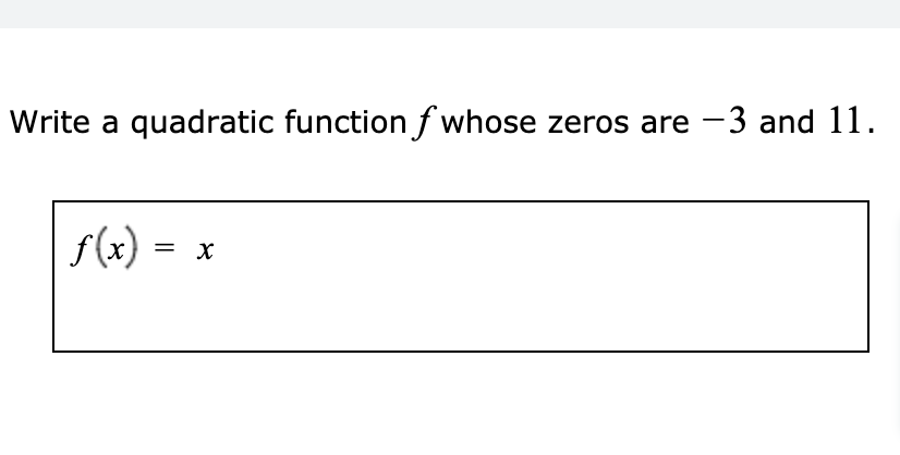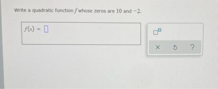 We review their content and use your feedback to keep the quality high. Write a quadratic function f whose zeros are 3 and 10. When we set each binomial equal to zero and solve we get the x-intercepts of the graphthe zeros of the quadratic.